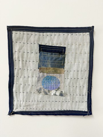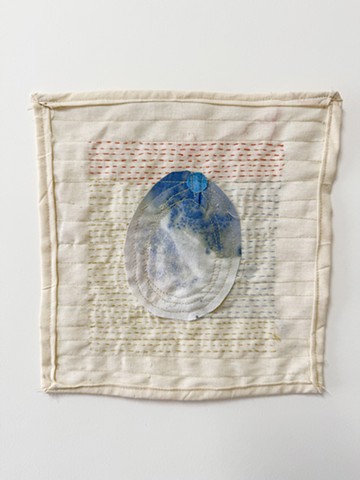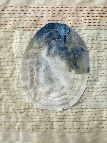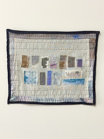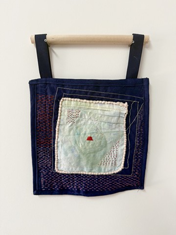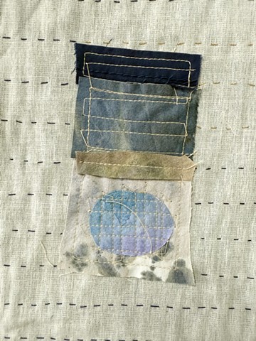 Watercolored Cotton on Muslin with machine embroidery and bells, hand quilted